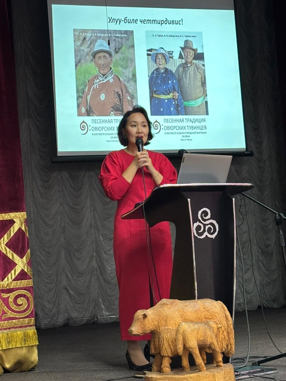 3 октября 2025 г. в Кызыле в «Центре развития тувинской традиционной культуры и ремесел» произошло знаменательное событие для академической и культурной жизни Республики Тыва – проведена презентация коллективной монографии в 2-х частях «Песенная традиция овюрских тувинцев в контексте сельско-городской миграции XXI века» (авторы: Екатерина Тирон , Азияна Байыр-оол, Инна Тарбастаева , отв. ред. Галина Солдатова).