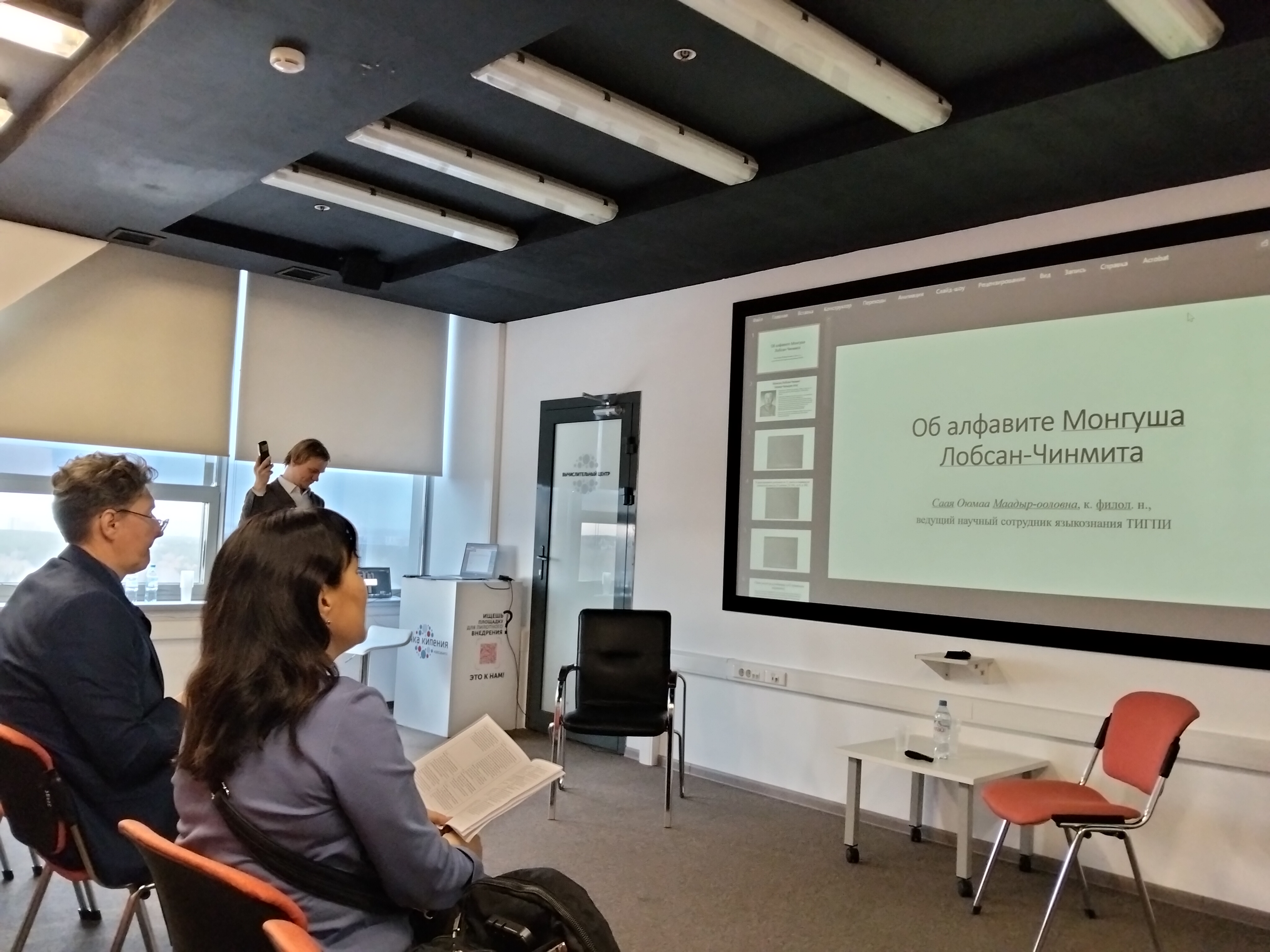 На пленарном заседании первого дня науч. сотрудник, канд. филол. наук Тимофей Владимирович Тимкин (в соавторстве с Н.Б. Кошкаревой, Н.С. Уртегешевым, Т.Р. Рыжиковой и И.М. Плотниковым) представил коллективный доклад «Фонетика сургутского диалекта хантыйского языка: результаты многоаспектного экспериментального описания». В завершении первого дня научный сотрудник Национальной библиотеки им. М. В. Чевалкова (г. Горно-Алтайск) канд. филол. наук, доцент Лариса Николаевна Тыбыкова представила участникам конференции документальный фильм о петроглифах и тюркских рунических надписях Республики Алтай.